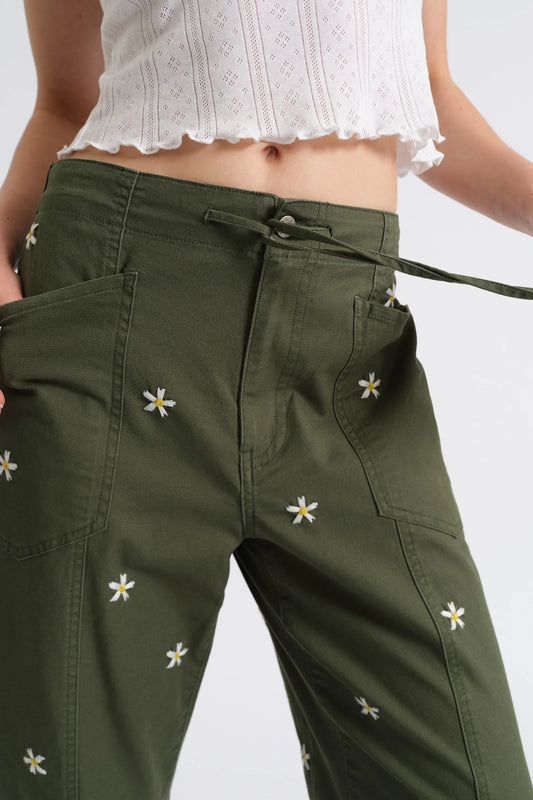 Villa Drawstring Barrel Leg - Green Daisy