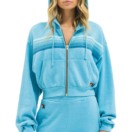 5 Stripe Cropped Hoodie - Aquamarine / Aqua