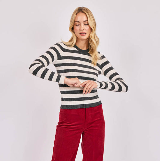 Sabine Stripe Sweater - Charcoal Ivory