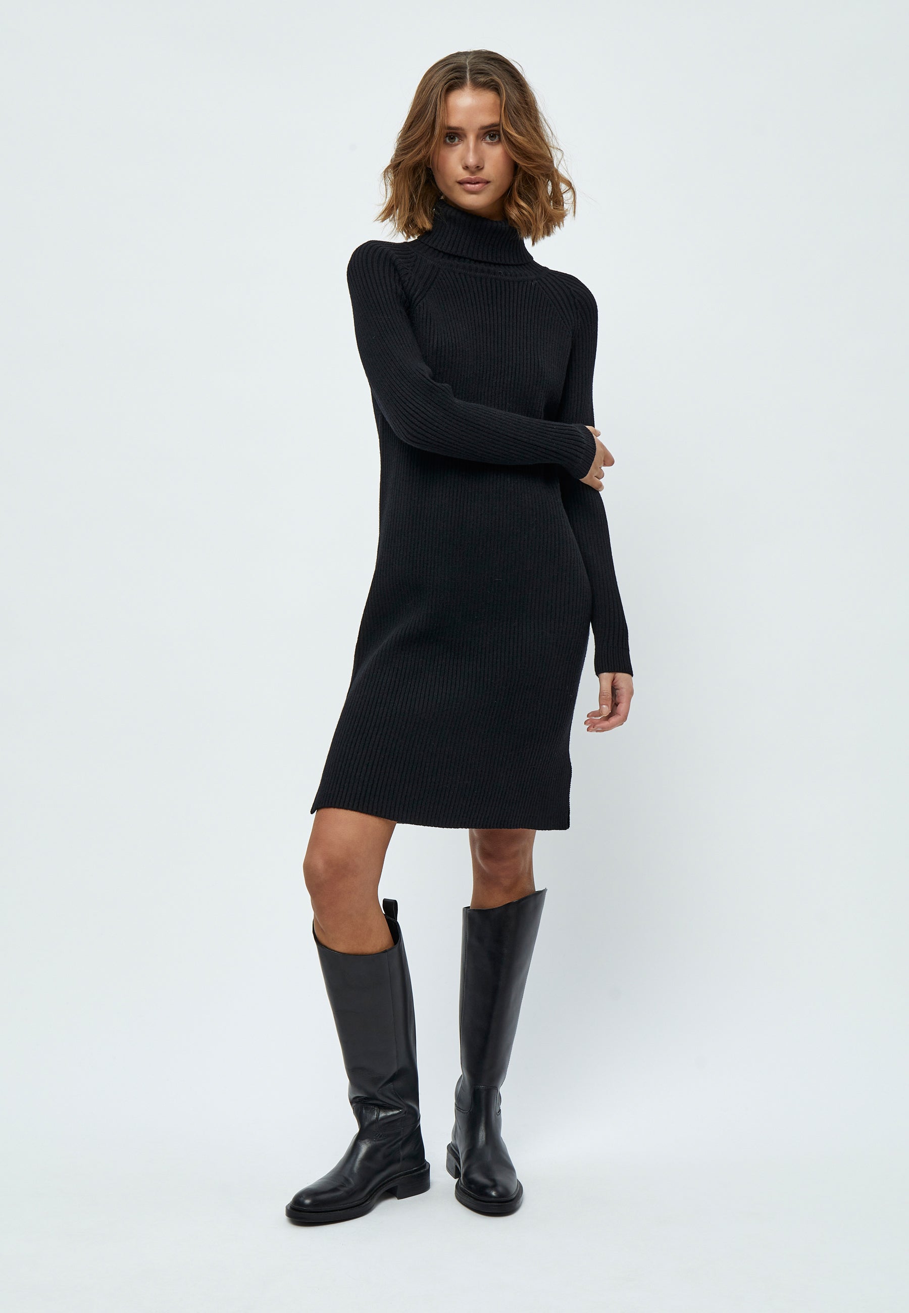 Classic fit nibble turtleneck knit dress in a knee length with slits at the side.