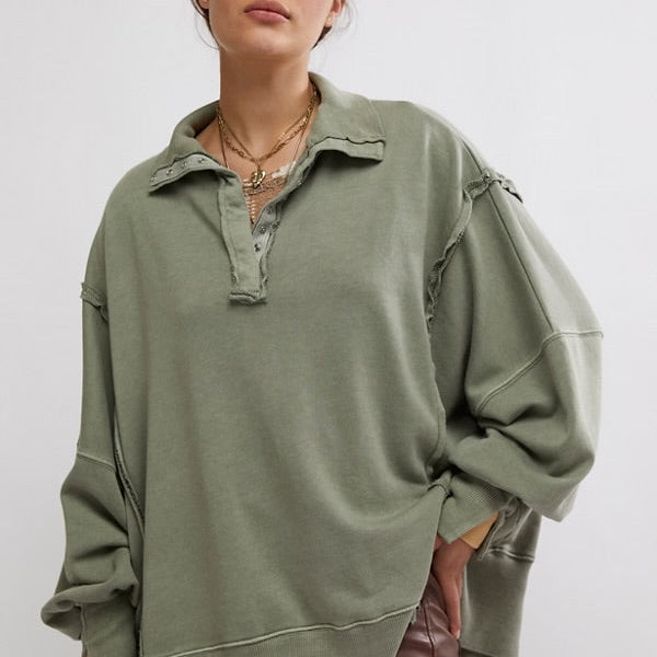 A new favourite essential sweatshirt from the We the free collection now featured in a staple henley silhouette.