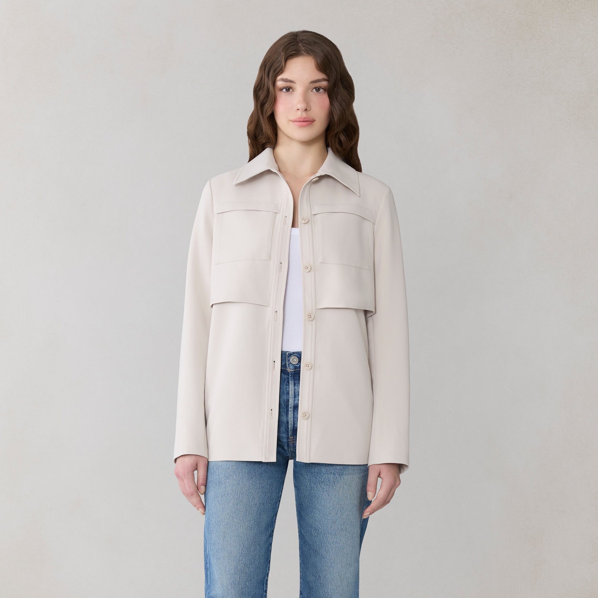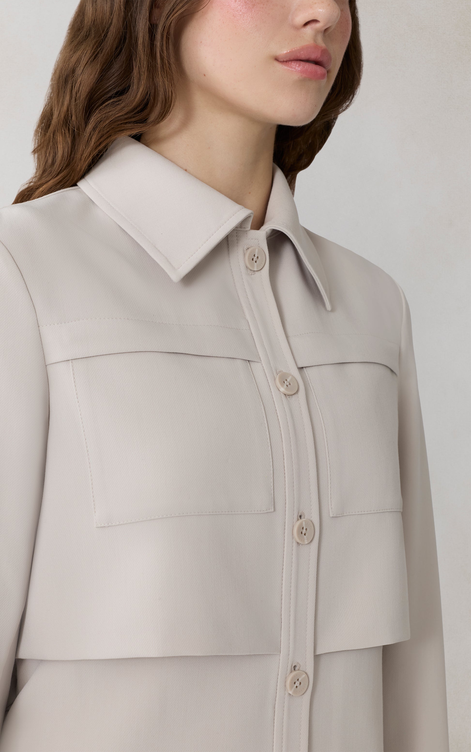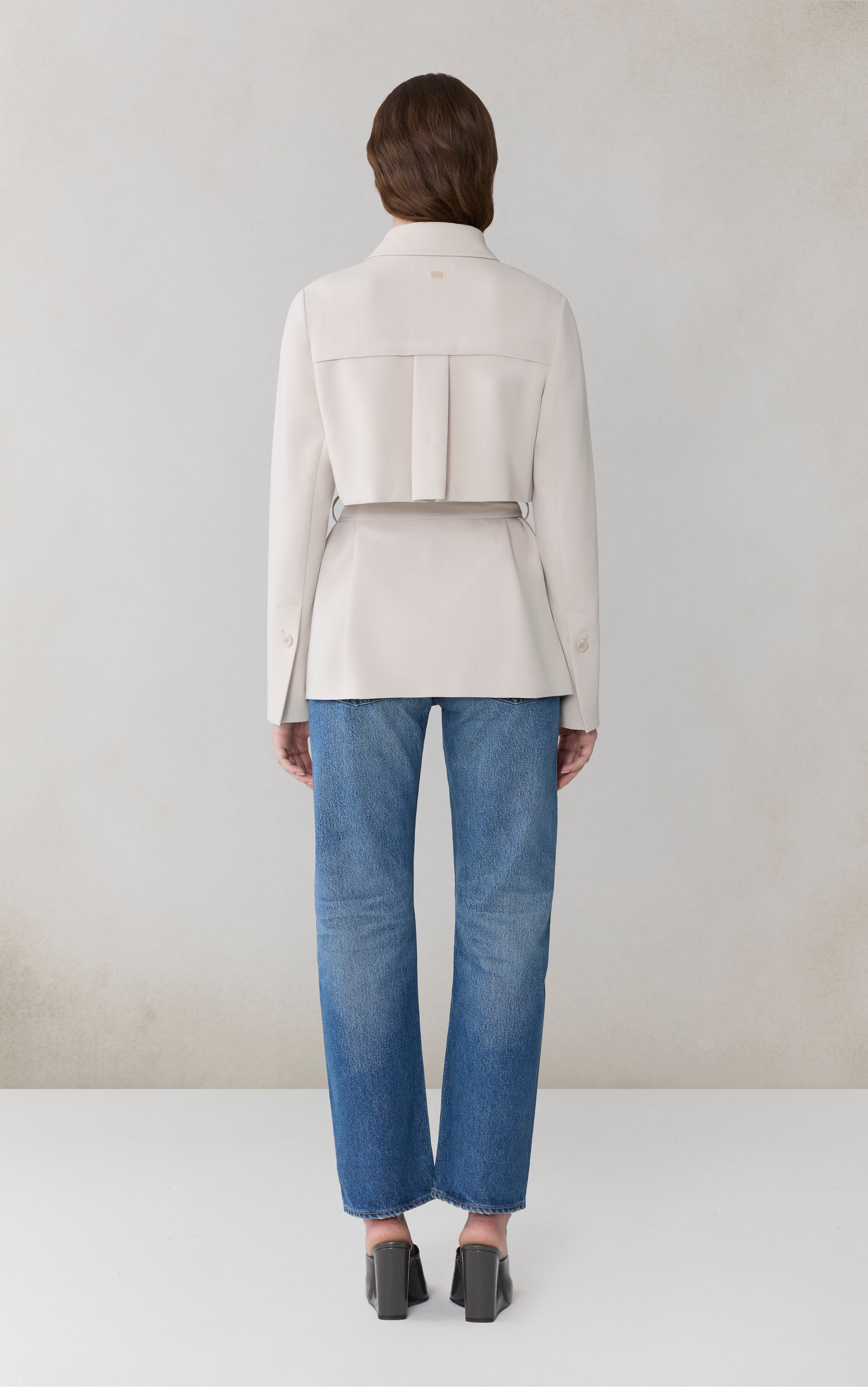 HAISLEY by SOIA offers a refined take on the utility jacket. Designed in a stretch cross-hatch blend with a detachable belt and clean, unlined construction, it brings structure, ease, and versatility to everyday dressing.