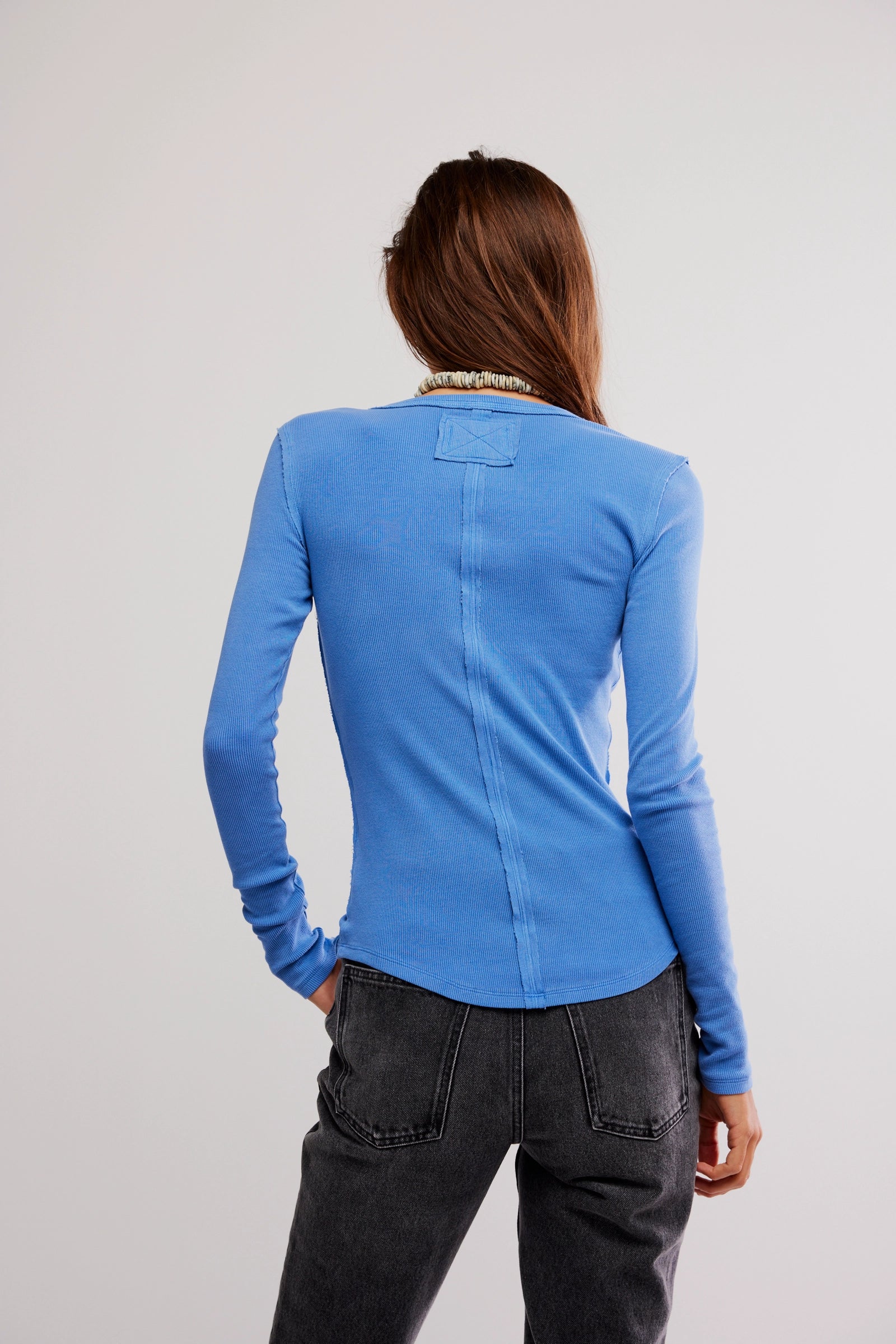 The long-sleeve you can wear with absolutely everything. This henley from the We The Free collection features a soft cotton fabrication and slim-fitting silhouette with defined seams and button closures.