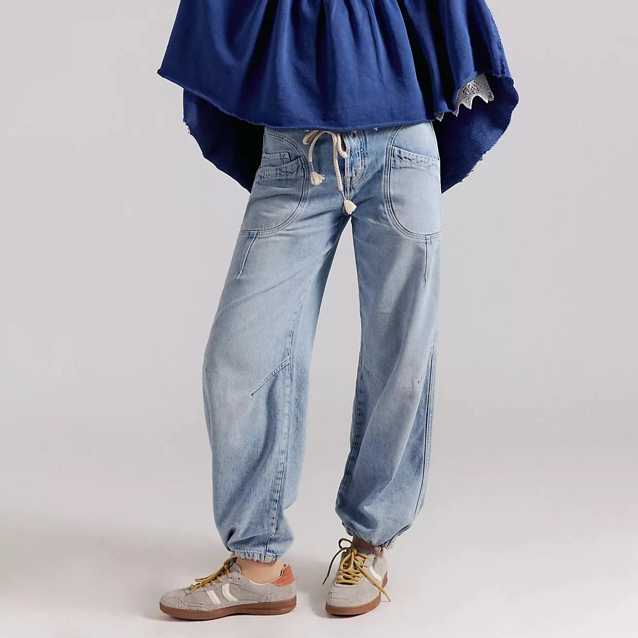 The perfect easy pair, these low-and-loose jeans from We The Free are featured in a pull-on style with a drawcord waistband and cuffs for that cool customizable fit.