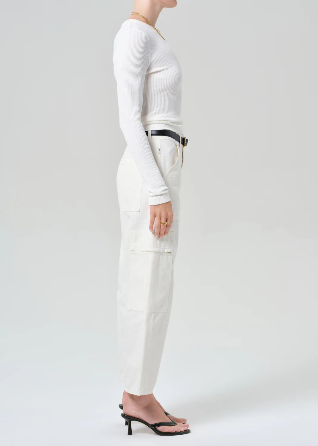 Easy and effortless. The Marcelle features cargo-inspired detailing and relaxed straight leg that tapers at the ankle. Crafted a breathable but rigid, non-stretch twill for all day wear - style yours back to heels or sneakers.