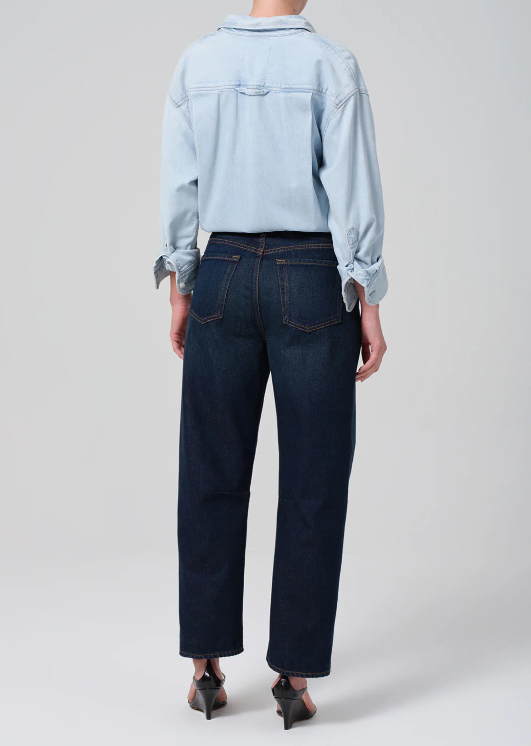 The Miro jean offers a slightly relaxed top block and tapered take on the barrel leg silhouette.