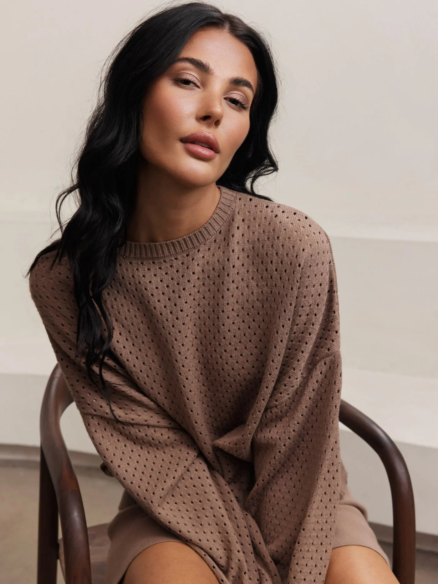 The Olly Crochet Sweater features an open crochet knit with subtle texture and a relaxed silhouette. Lightweight and breathable, it’s designed for easy layering over tanks, camisoles, or dresses. The slightly oversized fit offers a laid-back feel with a clean, polished finish.
