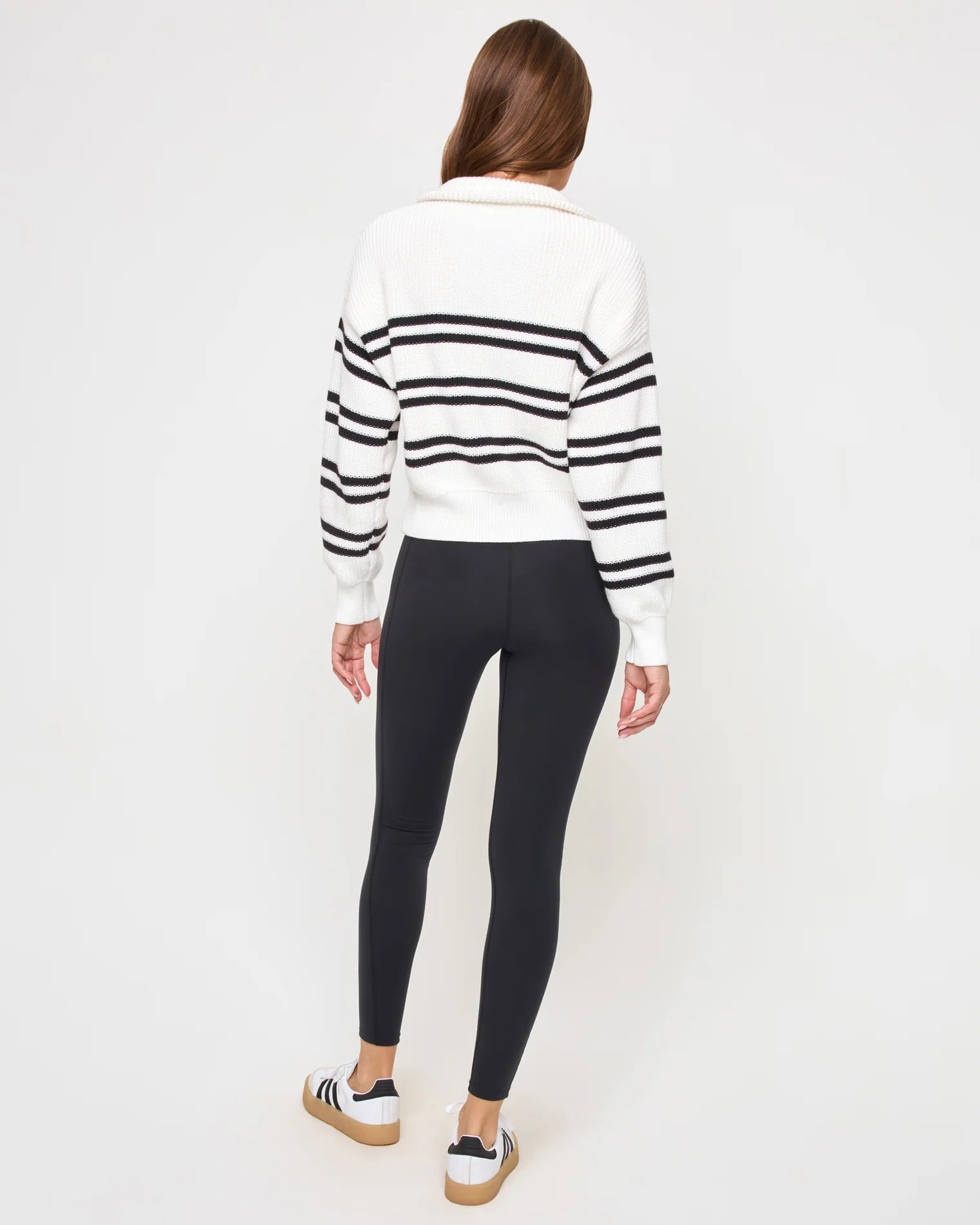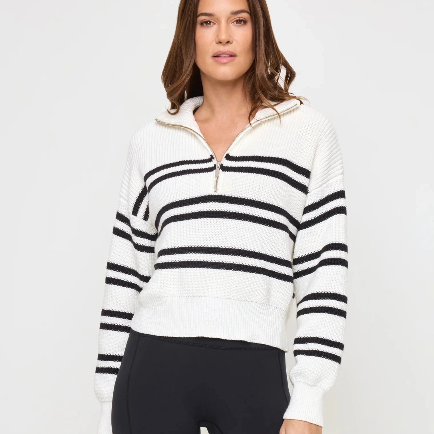 This quarter zip just may be the cutest thing ever. The Ultra Stripe Sweater combines all our fave things into one wearable piece - a ribbed fold over collar and cuffs, metal hardware zipper and stripes!