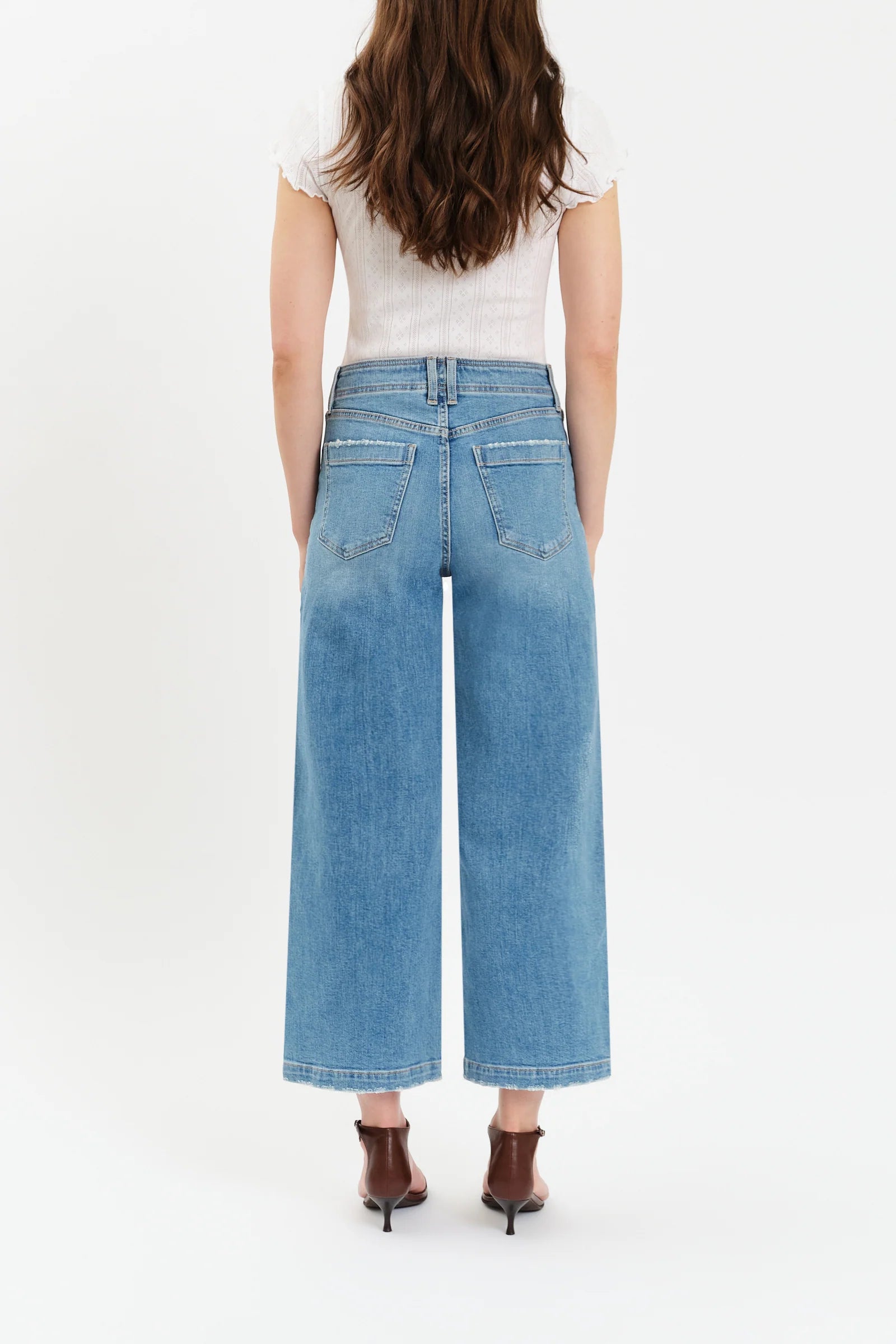 Inspired by LA’s hottest neighborhood, the Valley Girl in Fave is a high rise wide leg jean featuring retro-inspired patch pockets and clean hems.