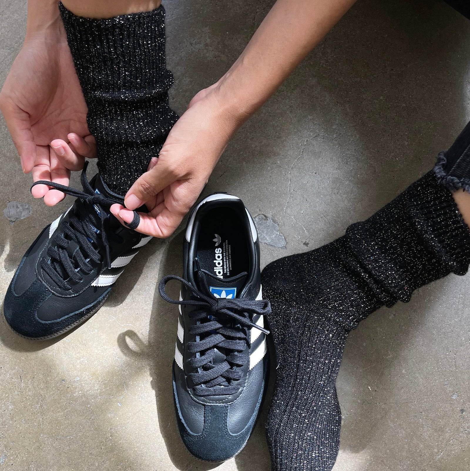 Nothing says twinkle toes like the Winter Sparkle Socks. Crafted from a cozy wool-Lurex blend, this sparkly version of the Snow Socks is sure to get you through the winter chill in style. The extra length can be worn mid-calf for warmth or scrunched or folded with your favourite clogs or Mary Janes.